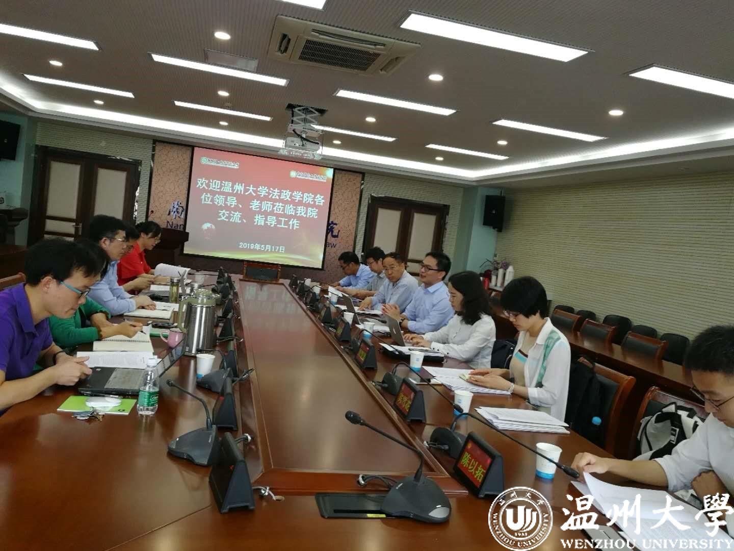 缪心毫副院长首先介绍了近年来温大法学研究生培养的发展情况,并重点介绍了温大法学在打造浸入式全情境研究生实务模式所取得的成绩及未来的发展思路。刘远副院长对法政学院一行的到来表示热烈的欢迎,并介绍了南师大麻豆在线 的研究生培养情况,重点介绍了南师大麻豆在线 新制定的研究生培养方案及其课程设置,并分享了研究生培养的经验与心得。双方老师就研究生的培养目标、专业培养特色、特色课程设置等各个方面展开了充分的讨论,并就未来温大与南师法学研究生培养师资交流、学生互换等事项进行初步的沟通,气氛融洽,收获颇丰。