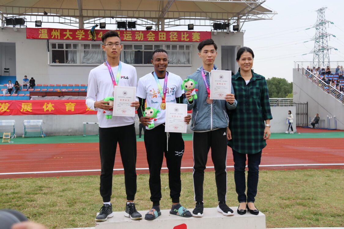 本届运动会中,法政学院依旧在长跑项目上保持极其领先的优势。季圣博同学和李鸿艳同学包揽男子5000米冠亚军和1500亚季军,吴慧敏同学更是摘得女子1500和3000米桂冠,是名副其实的“双冠王”。我们的留学生健儿们同样取得了优异的成绩,Mlilwana Clint O’Neal Veneruru以风驰电掣般傲人的成绩勇夺一百米冠军,Yolanda Lifa在女子铁饼项目上摘得金牌,CHRISTOPHER CHIBAGE获得了男子400米第二,他们的辉煌成绩为法政学院总分添上浓墨重彩的一笔。此外,在男子跳高与三级跳远的比赛场上,葛致远同学完成了一次次精彩的跳跃,展现了法政学子的自信,取得了跳高第五、三级跳第三的优异成绩。在团体赛中,法政健儿也取得了不菲的成绩,男子4×100米喜获第二,女子4×100也获得了第八名的好成绩。