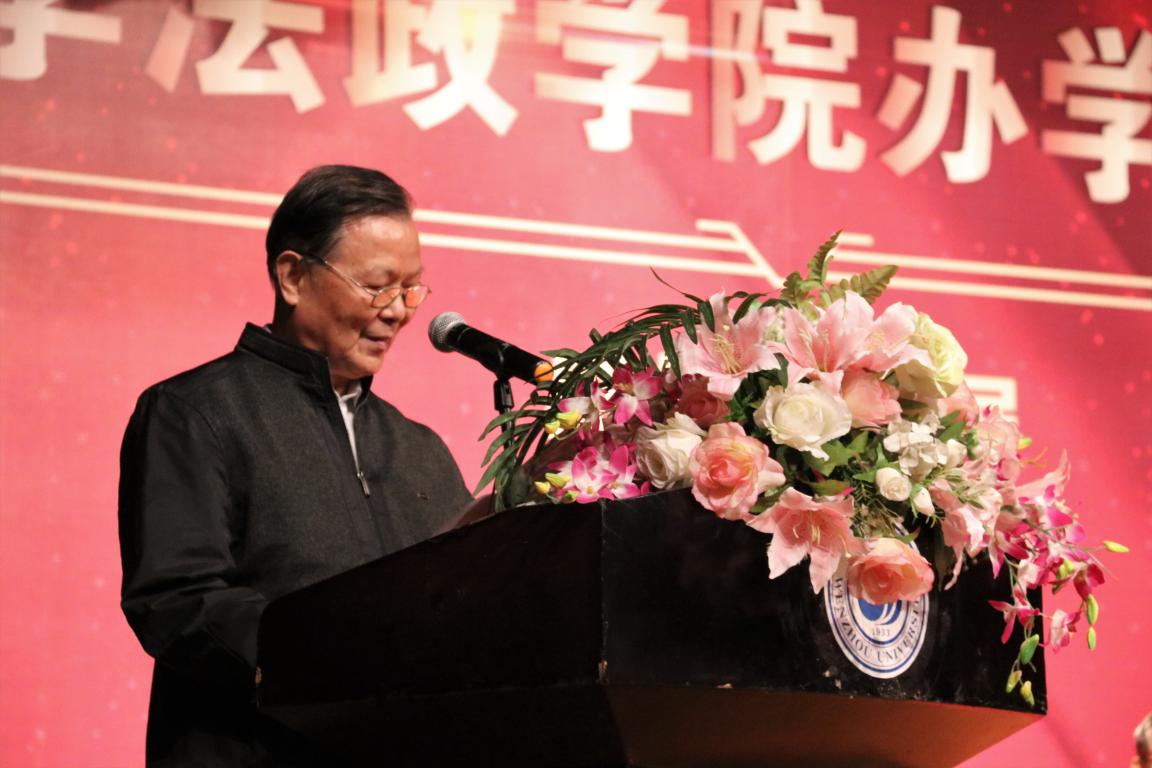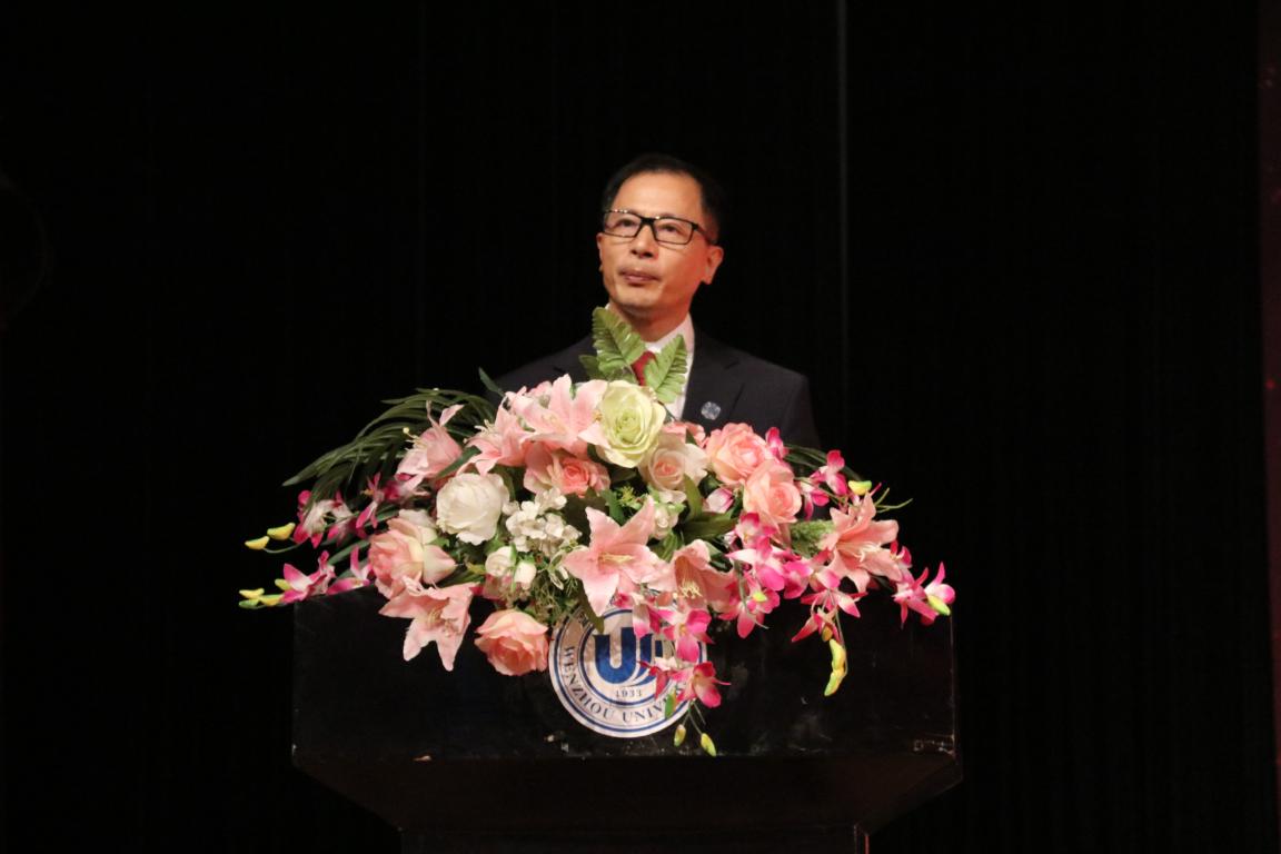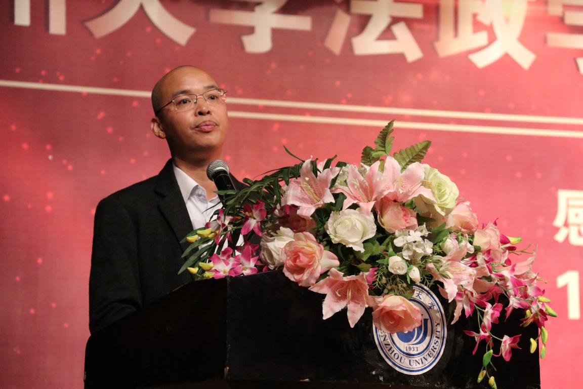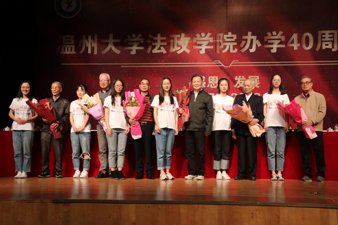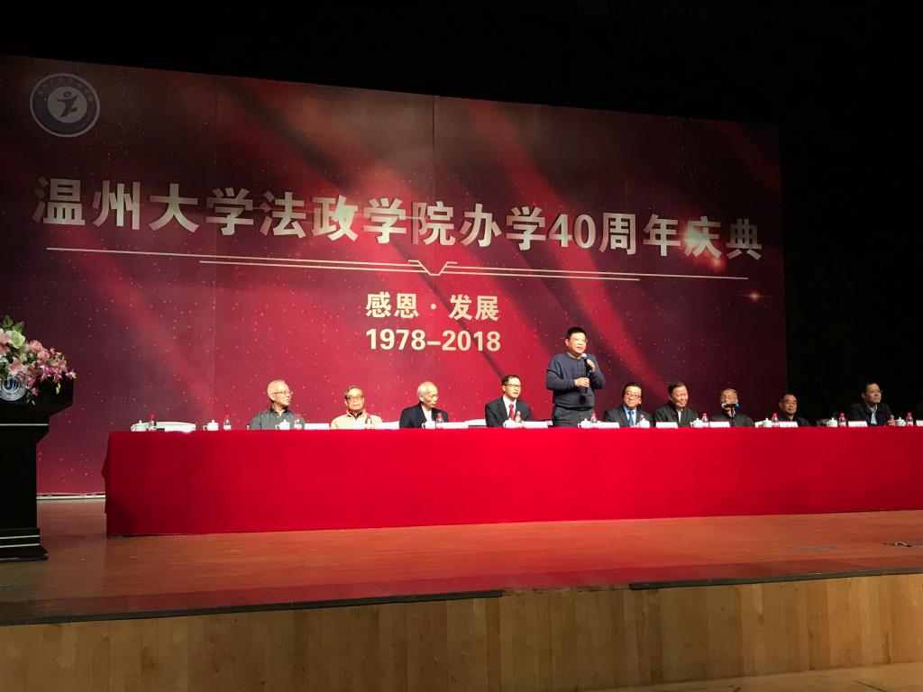 温州大学副校长方益权致欢迎辞。他介绍了温州大学的办学历史和蓬勃发展的崭新面貌,表示热烈欢迎各位毕业生回校建言献策,为母校的发展贡献自己的力量,母校永远是每位校友的家。法政学院院长王宗正站在学院“升博”培育的奋斗新起点上对学院四十年的发展历程做了详细的回顾,四十年风雨兼程,四十年巨大变迁,过去的四十年是法政人奋发进取、自我超越的四十年,感恩历届学院师生领导为学院发展奠定的坚实根基。老教师代表胡宪荣老师关于回忆、奋斗、感恩的精彩讲话让现场掌声不断;知名院友代表上海金太阳教育集团董事长翁学院院友分享了自己在校的美好时光和几十年创业的成长历程,感恩母校让他规划了人生梦想,获得了创业进取的奋斗基因,他精彩的创业历程和人生经历让在场师生感动不已;在校生宋卓君同学尽显青春朝气的发言让在场1000多法政人的心走到了一起,为法政学院过去的成绩喝彩,为学院未来的发展而用青春奋斗!