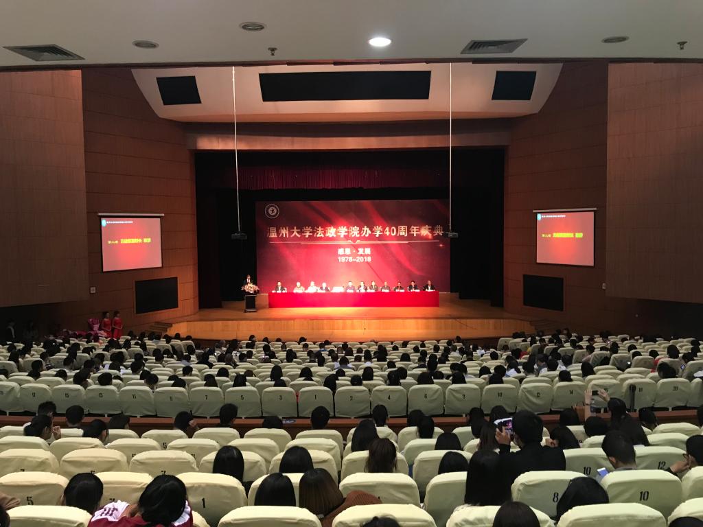 金秋十月,硕果飘香。2018年10月20日上午,怀着喜悦的心情,230多名来自全国各地的温大法政院友和800多位在校师生齐聚高教园区温州大学育英大礼堂,共同参加温州大学法政学院办学四十周年庆典。莅临学院办学四十周年庆典的领导有正校级领导、原政治科教师周湘浙老师,校党委委员、副校长蔡曙光老师,校党委委员、副校长方益权老师,参加庆典的还有法政学院历任学院领导和曾经在学院工作过的教师和各行各业的院友以及全体在校师生。典礼由学院党总支书记林钦主持。