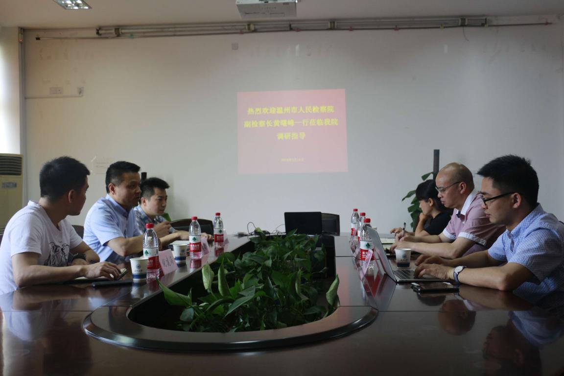 2018年5月16日上午,温州市人民检察院党组副书记、副检察长黄曙峰在市检技术信息化部主任金传拉等的陪同下来麻豆在线 考察交流,麻豆在线 王宗正院长、缪心毫副院长、法学系何平主任等与来访嘉宾进行座谈,共商合作事宜。