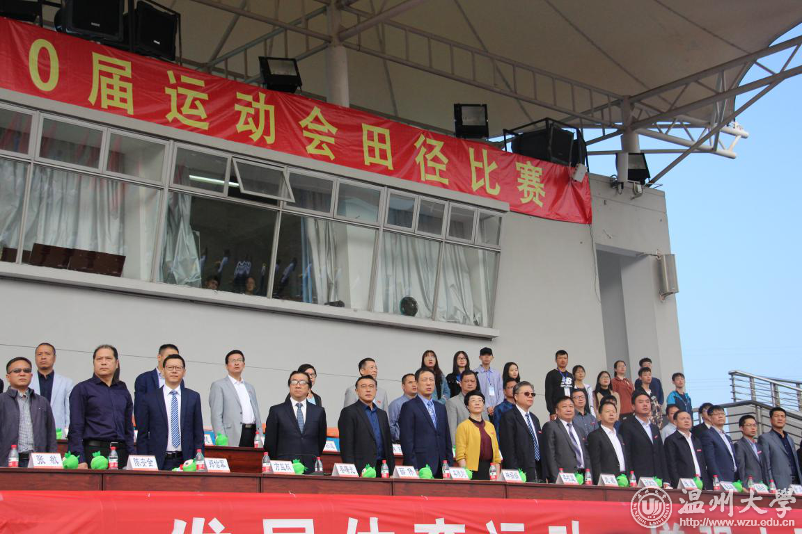 2017年11月2日上午,温州大学第四十届运动会田径比赛在温州大学北校区田径场隆重开幕。全体校领导、各部门负责人、运动会主席团成员、以及各学院全体师生均出席本次开幕式。