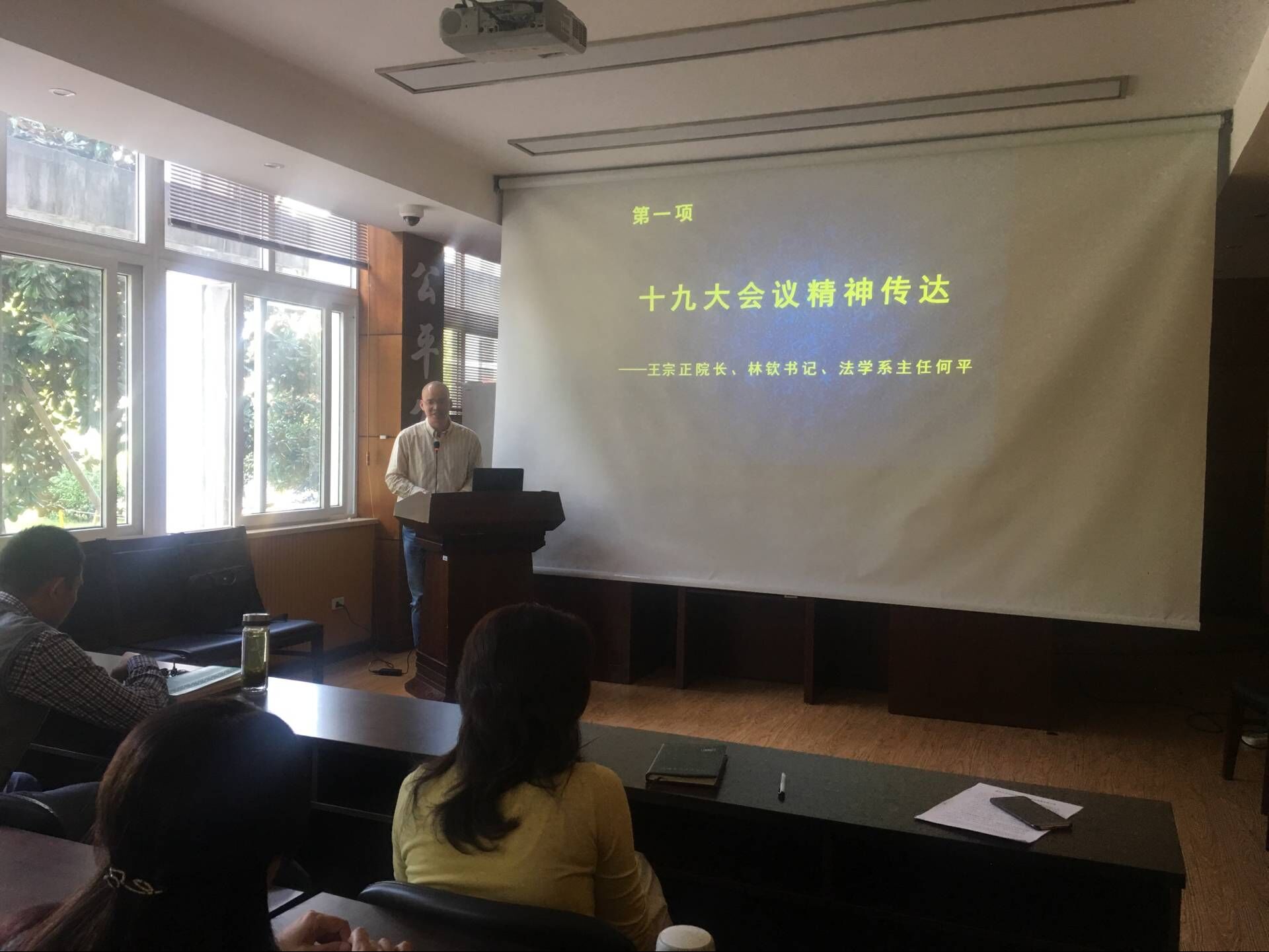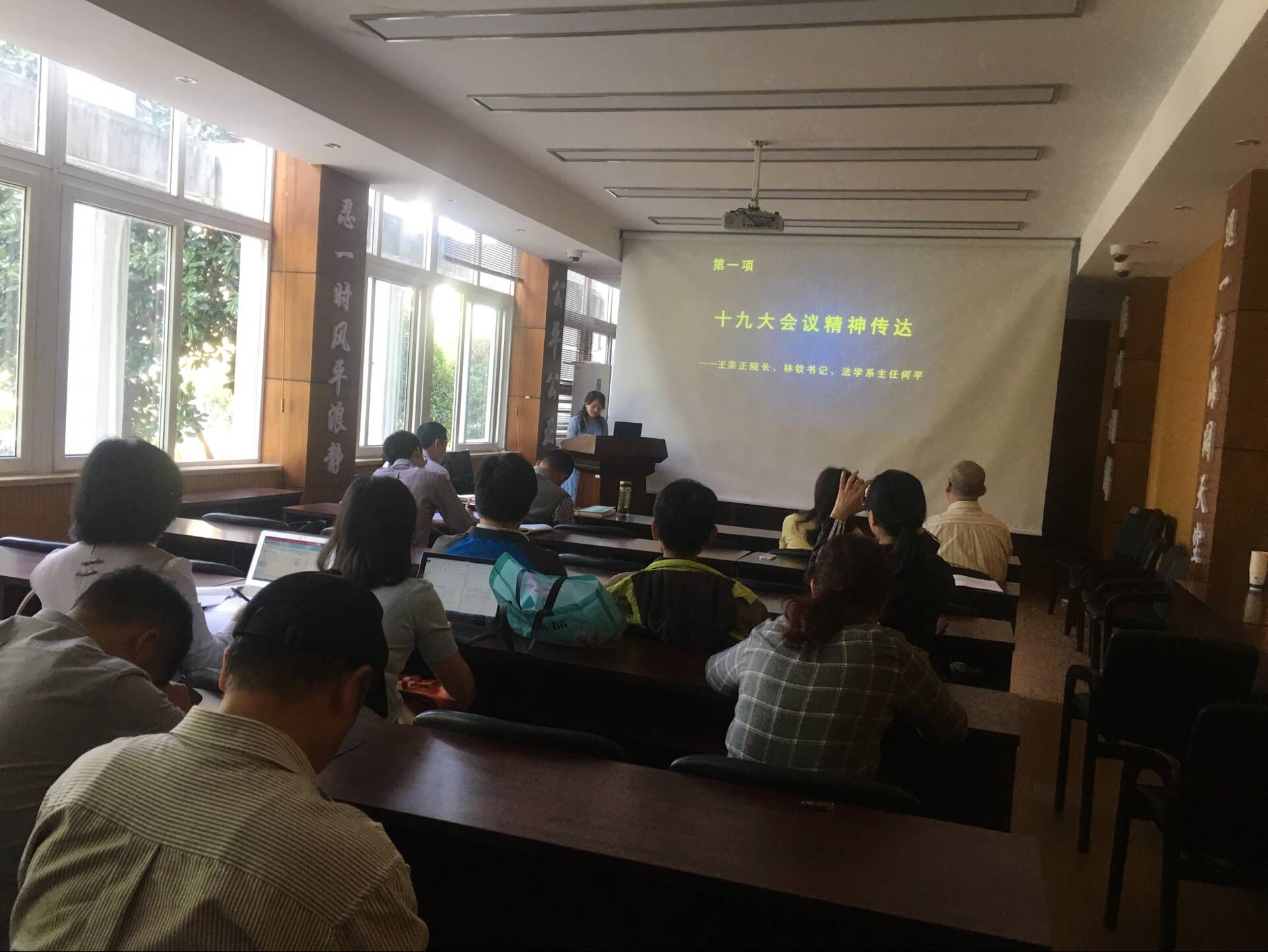 年10月25日下午,在法政学院报告厅举行了全体教工和学生党员学习会,会议由林钦书记主持,全体教工和学生党员参加。