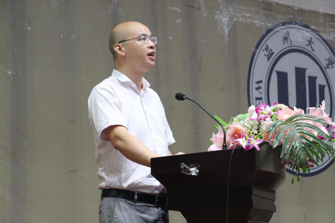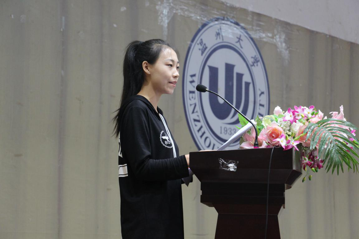 首先,王宗正院长致辞对新生来到法政学院学习表示热烈欢迎。王院长在致辞中向新生介绍了法政学院的办学历史与特色,特别提及了近几年由法政学子获得的各类学业成绩和重大奖项以及毕业后的就业质量稳居全校甚至全省前列,学院办学与地方立法和法律实践工作相结合等方面。他指出在学院的优秀师资和良好文化环境中,新生同学只要努力拼搏,一定不会后悔选择温大法政学院这个精英荟萃的"浙南黄埔军校和人才培养高地",他还对新生入校后的生活和学习适应、学业规划提出了建议。曾获得"温州大学最受学生爱戴老师"称号的项一丛老师代表全院老师对2017级新生的到来表示热烈欢迎,项老师围绕大学生的自由与担当等学业学风话题娓娓道来,富有文采和哲思的发言赢得新生的阵阵掌声。老生代表、院学生会主席梅铁楠同学和新生代表孙丽娜同学也作了充满激情的发言,分别表达了作为法政学子在成长成才方面的决心和信心。紧接着,新"声"唱响环节由17级新生代表李淇、朱纯慧、梁绍麟、叶蓉菲、郑暄萱共同带来歌曲联唱,新生们精彩的表演瞬间点燃了会场的气氛,他们用歌声唱出了法政学子特别是17级新生共同的希望和梦想。随后,全体17级新生全体起立,庄严进行了新生入学宣誓;"一朝法政人,一生法政人",今天的入学宣誓许下的是一份承诺,扛起的是全体法政人的责任与担当。最后,法政学院学生科科长孙德升老师为大家介绍法政学院各学生组织社团的工作品牌,并与大家一同欣赏学院宣传片及品牌活动短片,使大家对法政学院有一个更为全面的了解。