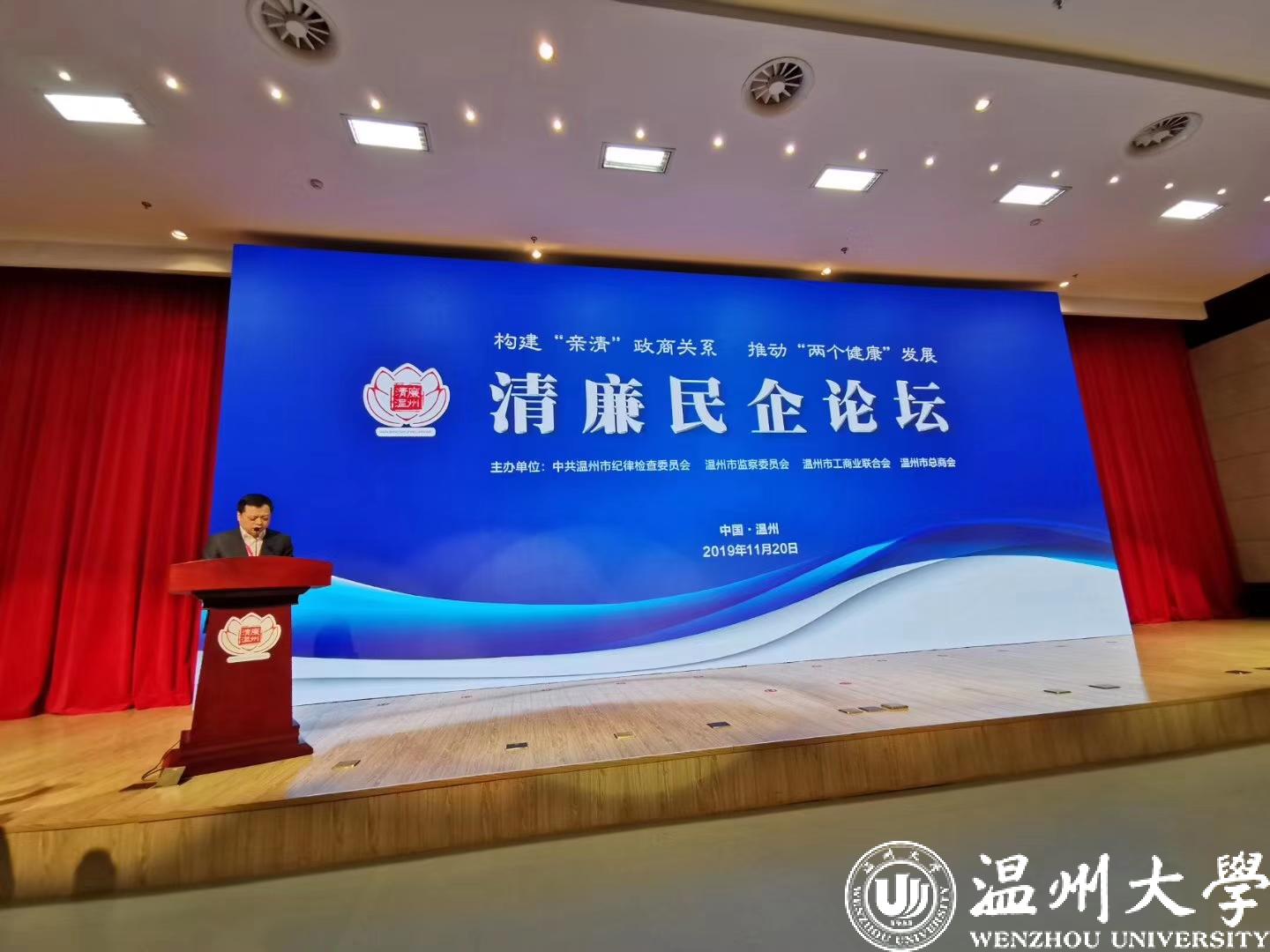 论坛现场清廉温州建设研究中心、清廉民企研究所正式授牌落户温州大学。清廉温州建设研究中心和清廉民企研究所是由中共温州市纪委、温州市监察委员会与温州大学共同建立的研究机构。研究中心将探索“理论研究-决策咨询-廉洁教育”“三位一体”模式,致力于温州市反腐倡廉理论研究、决策咨询以及廉洁教育和人才培养;清廉民企研究所则将以新时代“两个健康”先行区创建目标,为推进清廉民企建设、助力企业打造清廉文化、构建亲清政商关系开展理论研究、实践调研。通过与相关民企、行业协会、商会等常态化的联盟合作,搭建起纪检监察机关与民企沟通的桥梁,使清廉思想、清廉制度、清廉规则、清廉纪律、清廉文化融入民营企业发展之中,助力将温州建设成民企清廉建设的高水平示范区。