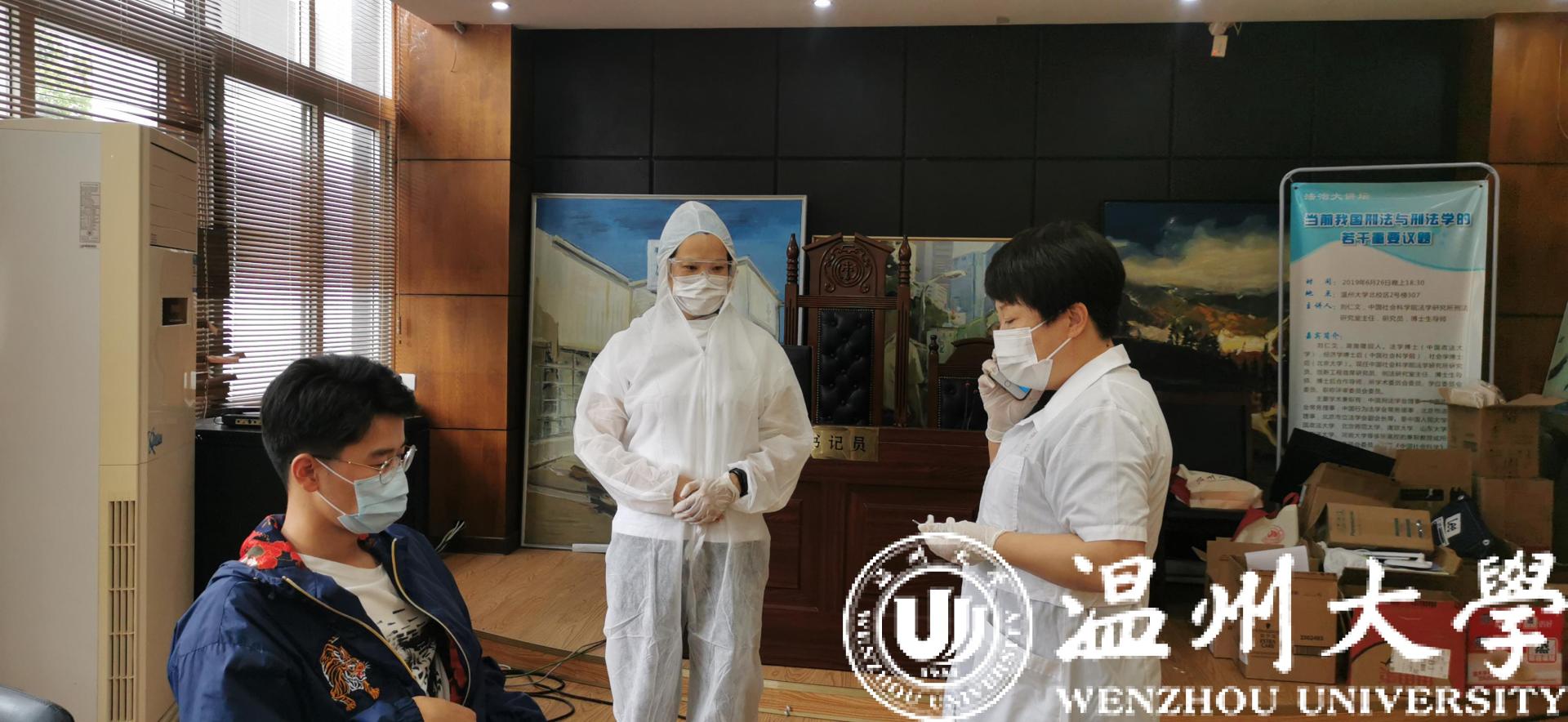 根据模拟情境,在麻豆在线 教室内发现一例发热、咳嗽有新冠肺炎疑似症状学生,学院立即启动应急处置机制,依次进行了任课老师发现并隔离疑似症状学生、联系第一应急响应人、辅导员到场了解情况、医生到场测温、报告处置等规范处置,先后在教室、临时隔离室等地进行流程演练。整个过程指挥有力,环节紧凑,应急人员分工明确,总体完成良好。