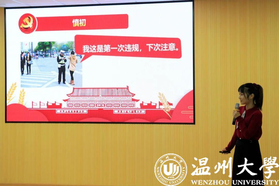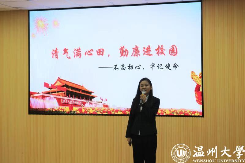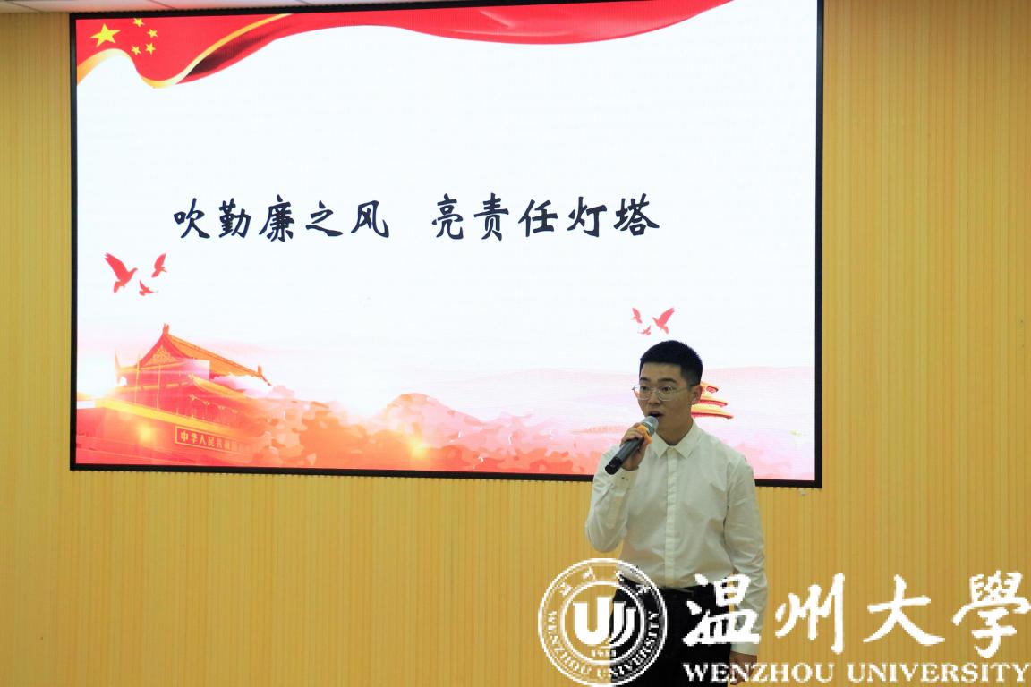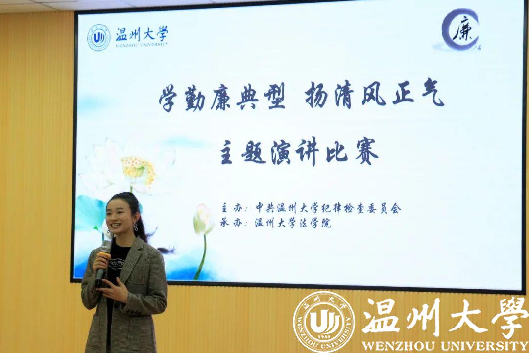 在比赛过程中,参赛选手们紧密围绕“勤廉”这一主题词,以饱满的热情、端庄大方的仪态、铿锵有力的表达展开精彩演讲。有的选手巧妙运用ppt带领在场的评委和观众们重温了包拯、焦裕禄、牛玉儒等勤廉典型的故事,体现了中华民族从古至今的坚定信仰和勤廉之风;有的选手娓娓道来,声情并茂地讲述了身边真实的典型事例和温州大学感动人心的廉政榜样故事,进一步提升了大家对勤廉的认识;有的选手从作为中共党员的角度分析了勤廉对于中国政党的意义,充分展现了中国共产党人“不拿群众一针一线”清正廉洁的初心与使命,激励同学们以“勤勉在行,廉洁在志”的精神积极承担社会责任,争做时代新人。
