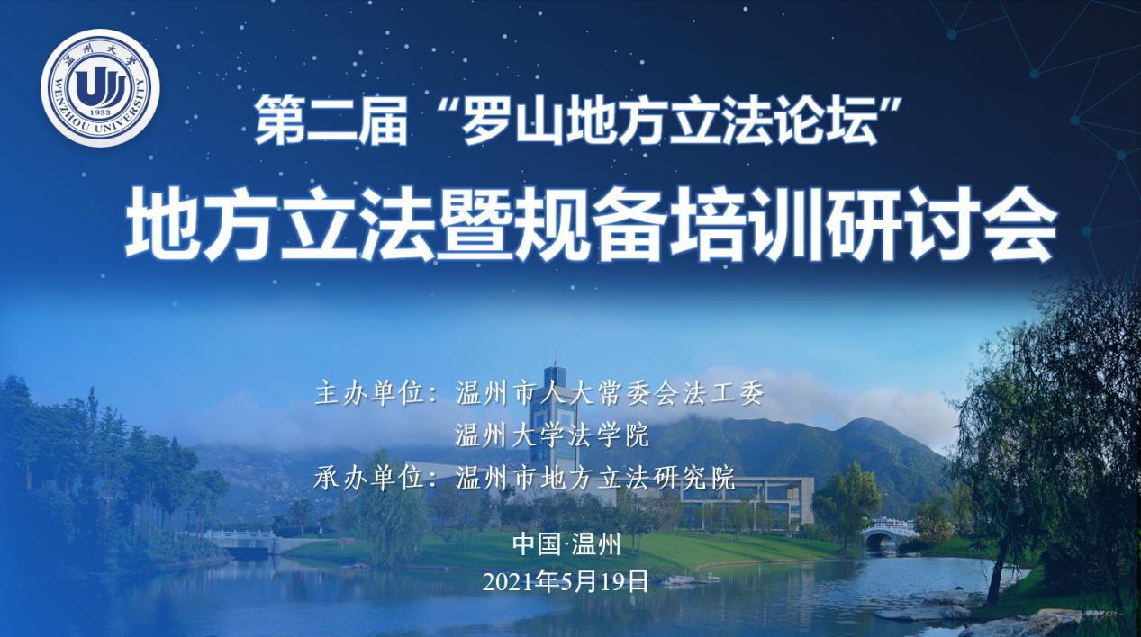 2021年5月19日,由温州市人大常委会法工委、麻豆在线-麻豆视频免费看 主办,温州市地方立法研究院承办的第二届“罗山地方立法论坛”——“地方立法暨规备培训研讨会”在坐落于美丽的大罗山下的温州大学南校区岩松堂白鹿厅隆重举行。
