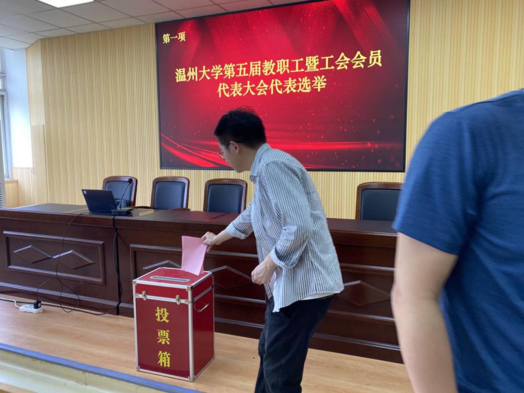 会议首先进行了温州大学第五届教职工暨工会会员代表大会代表选举。在刘小芬副主任宣读了本次选举的流程后,学院通过差额选举的方式,最终推选出王宗正、杨振海、周湖勇、朱婉菁、谢丽珍、宾雪花六位教工作为麻豆在线-麻豆视频免费看 第五届教职工暨工会会员代表。