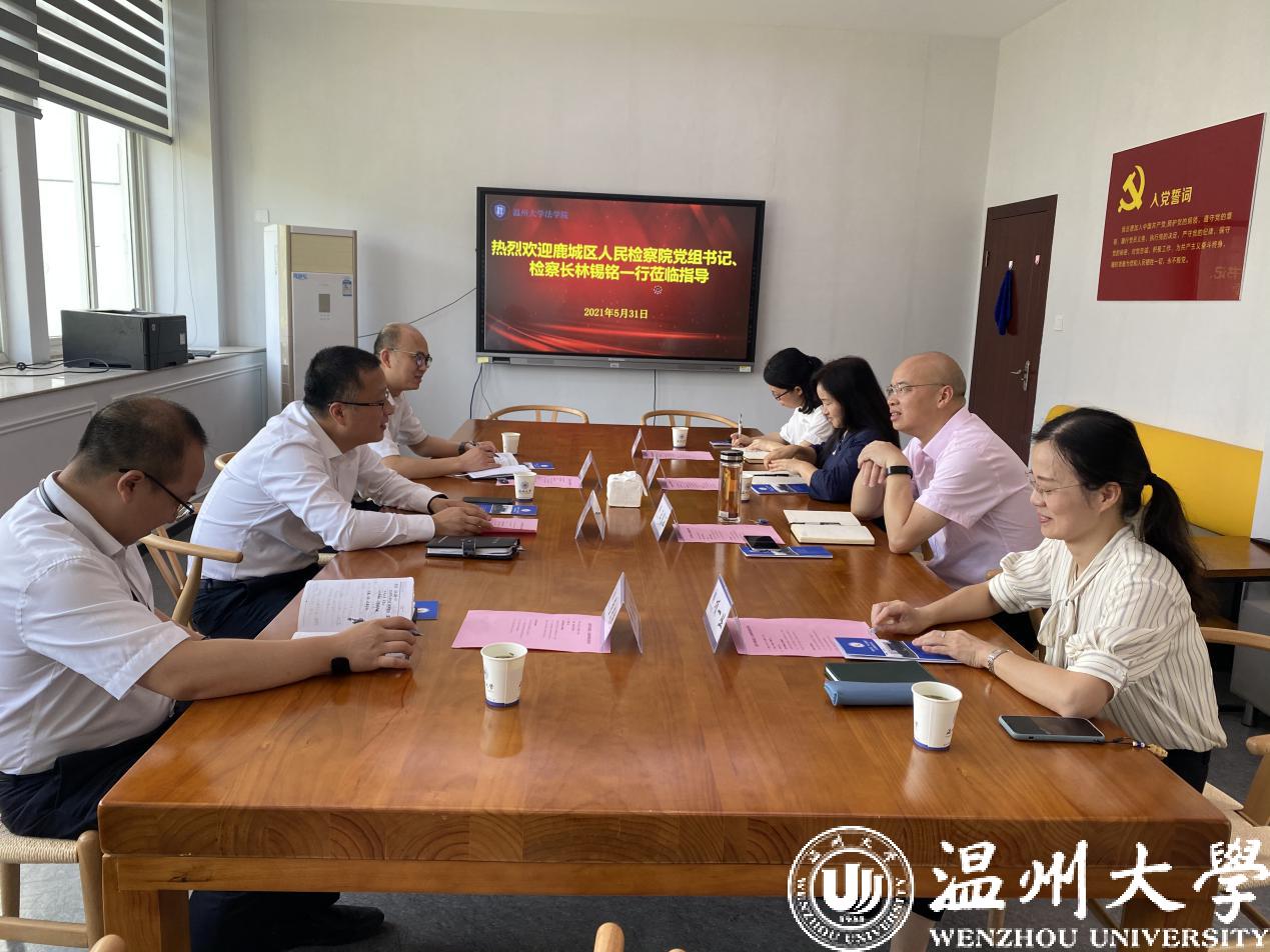 5月31日上午,鹿城区人民检察院党组书记、检察长林锡铭一行来麻豆在线 调研座谈,王宗正院长、院长事务助理兼法律系主任何平等出席会议。