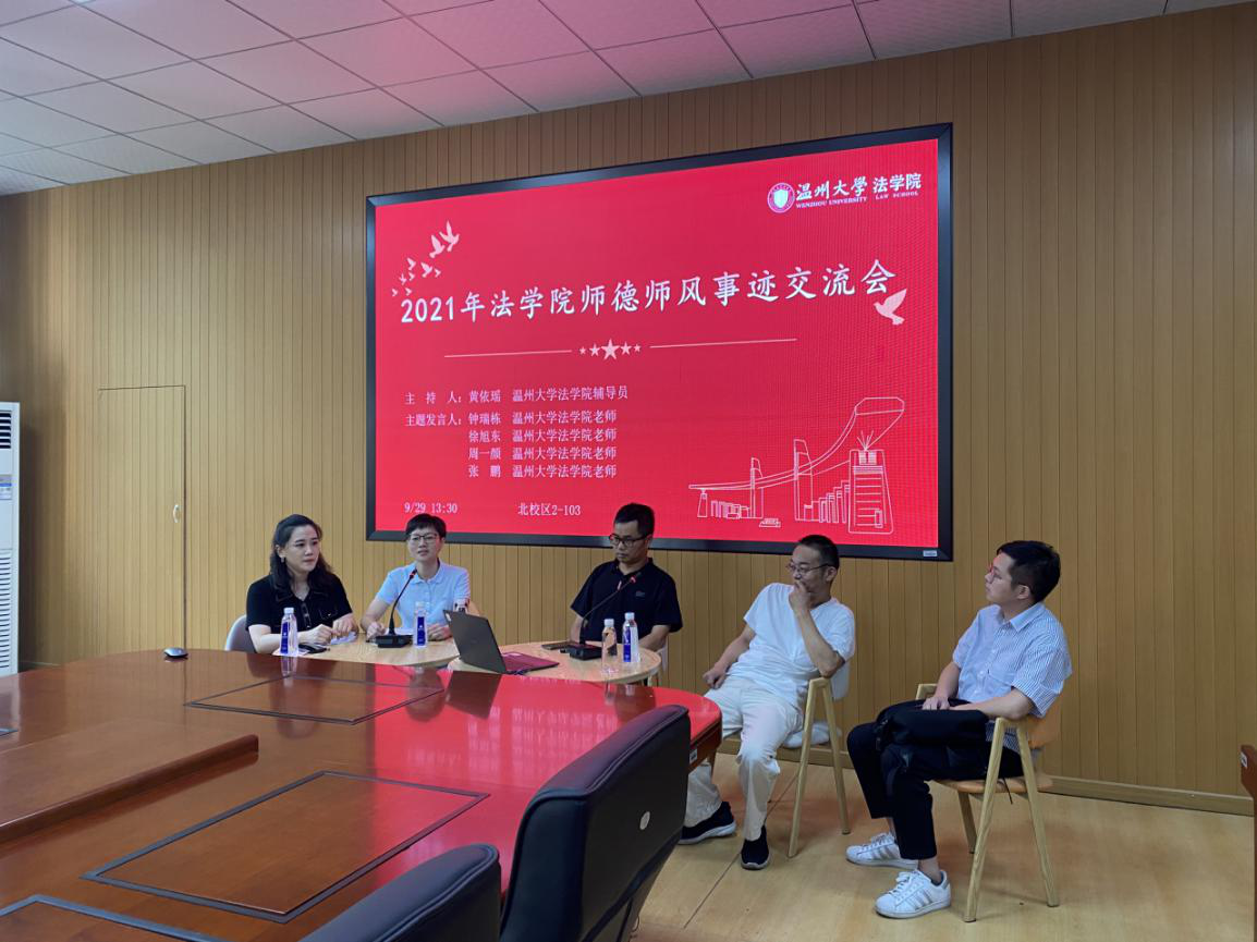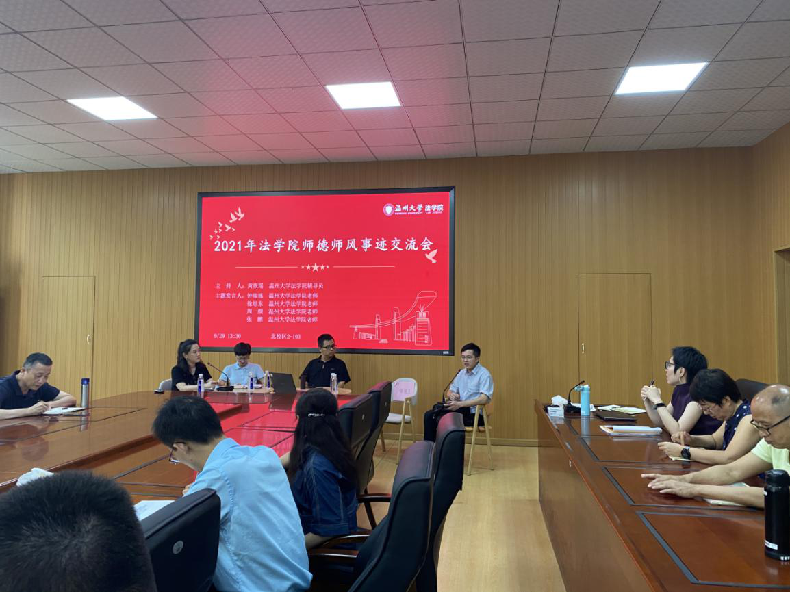 9月29日下午,麻豆在线 在北校区2号楼103会议室召开2021年学院师德师风事迹交流会。会议邀请钟瑞栋、徐旭东、周一颜、张鹏四位老师做师德师风事迹分享,辅导员黄依瑶主持会议,学院全体教工参加。