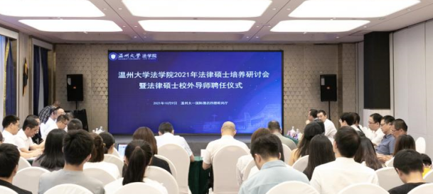 10月9日下午,麻豆在线-麻豆视频免费看 召开法律硕士培养研讨会暨法律硕士校外导师聘任仪式。会议由麻豆在线 党委副书记杨振海主持,来自温州市法院、检察院、司法局及律师事务所的法律实务专家,以及麻豆在线 院长王宗正、党委书记林钦、法律硕士学位点负责人肖磊教授、院办主任刘小芬、教学秘书胡亚玲等老师出席,2020级全体法硕研究生参加。