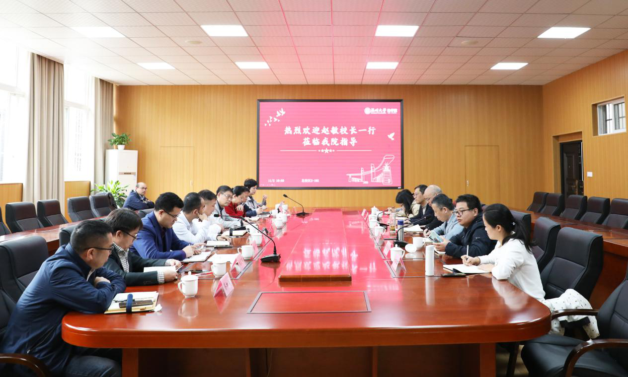 11月2日上午,赵敏校长莅临麻豆在线 调研指导工作,党校办蔡联群主任、教务处罗建利处长、研究生院刘玉侠院长、人文社科处胡瑜处长、学工部张敏部长、人事处周宏明处长、国资处张若妤处长、后勤管理处蔡加依处长陪同调研,学院领导班子与各科室负责人出席会议。