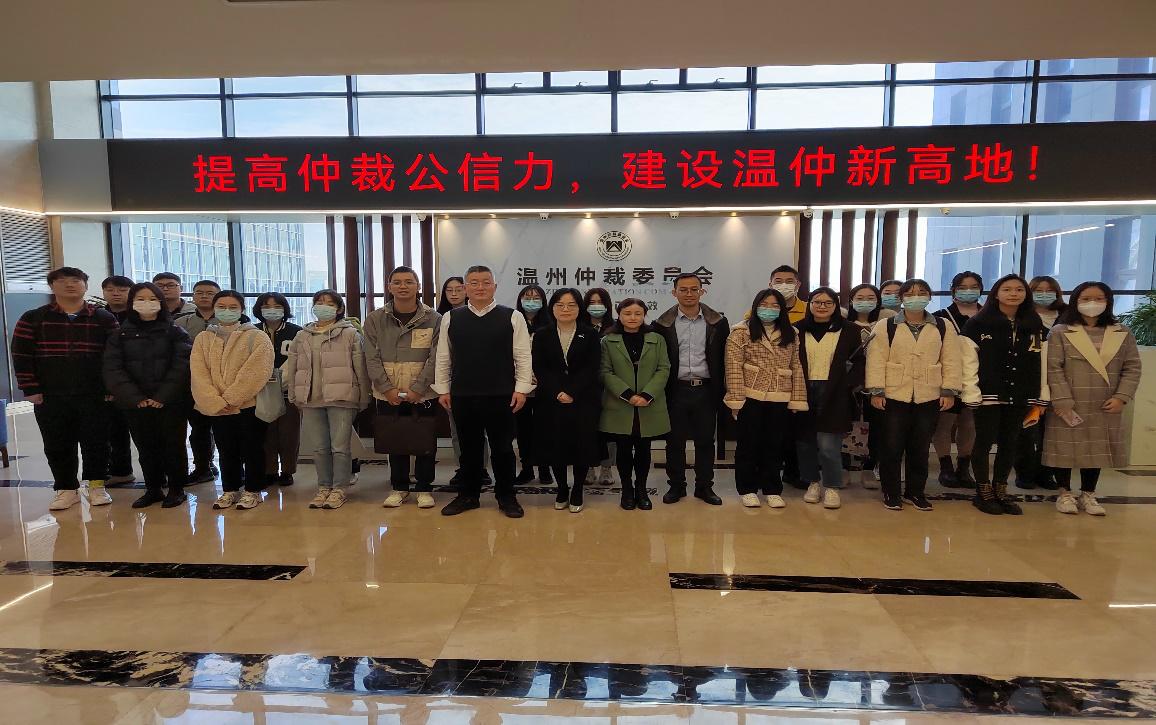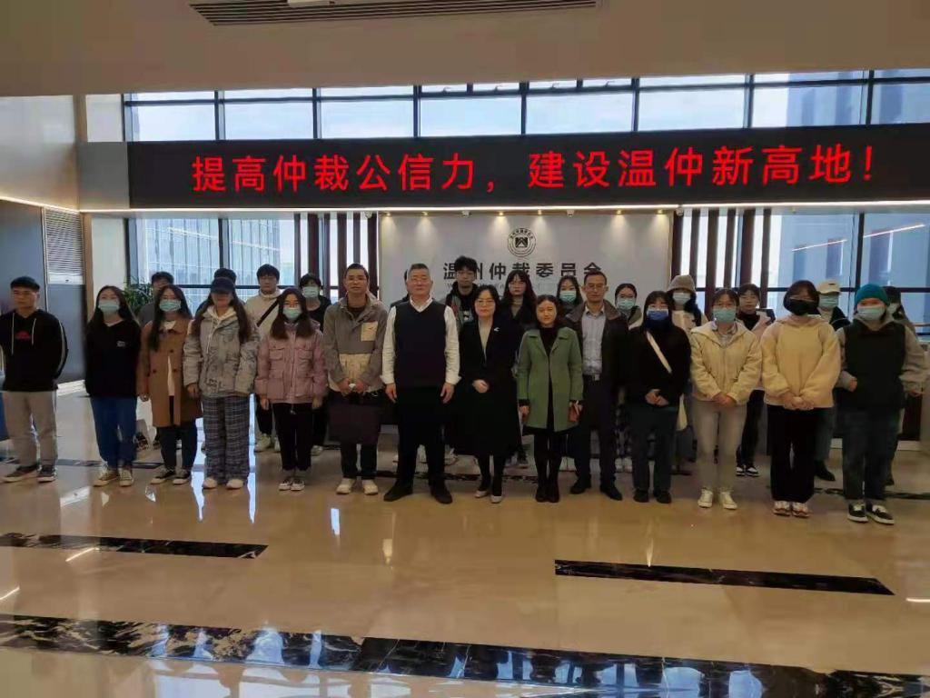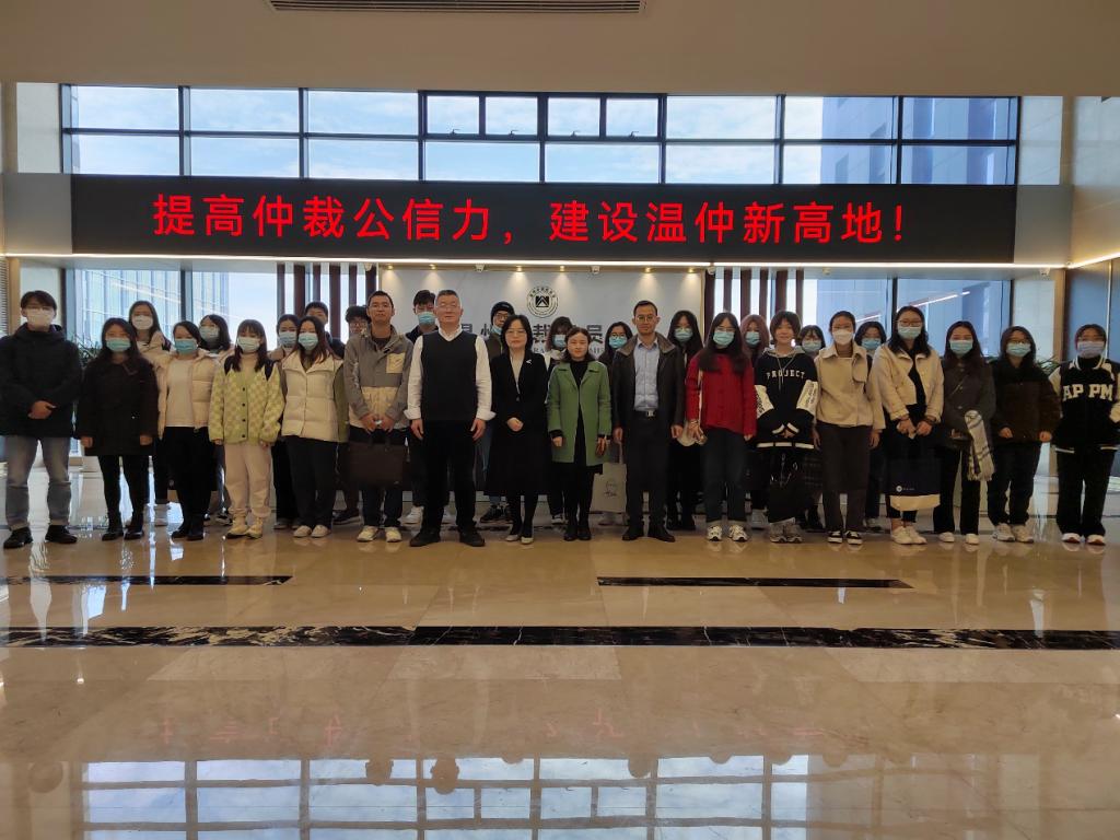 2021年11月25日,麻豆在线-麻豆视频免费看 2018级法学专业本科生赴温州仲裁委员会开展实践教学活动,课程组指导老师李勇军、何平、柯宇航、邱杓丹带队前往。