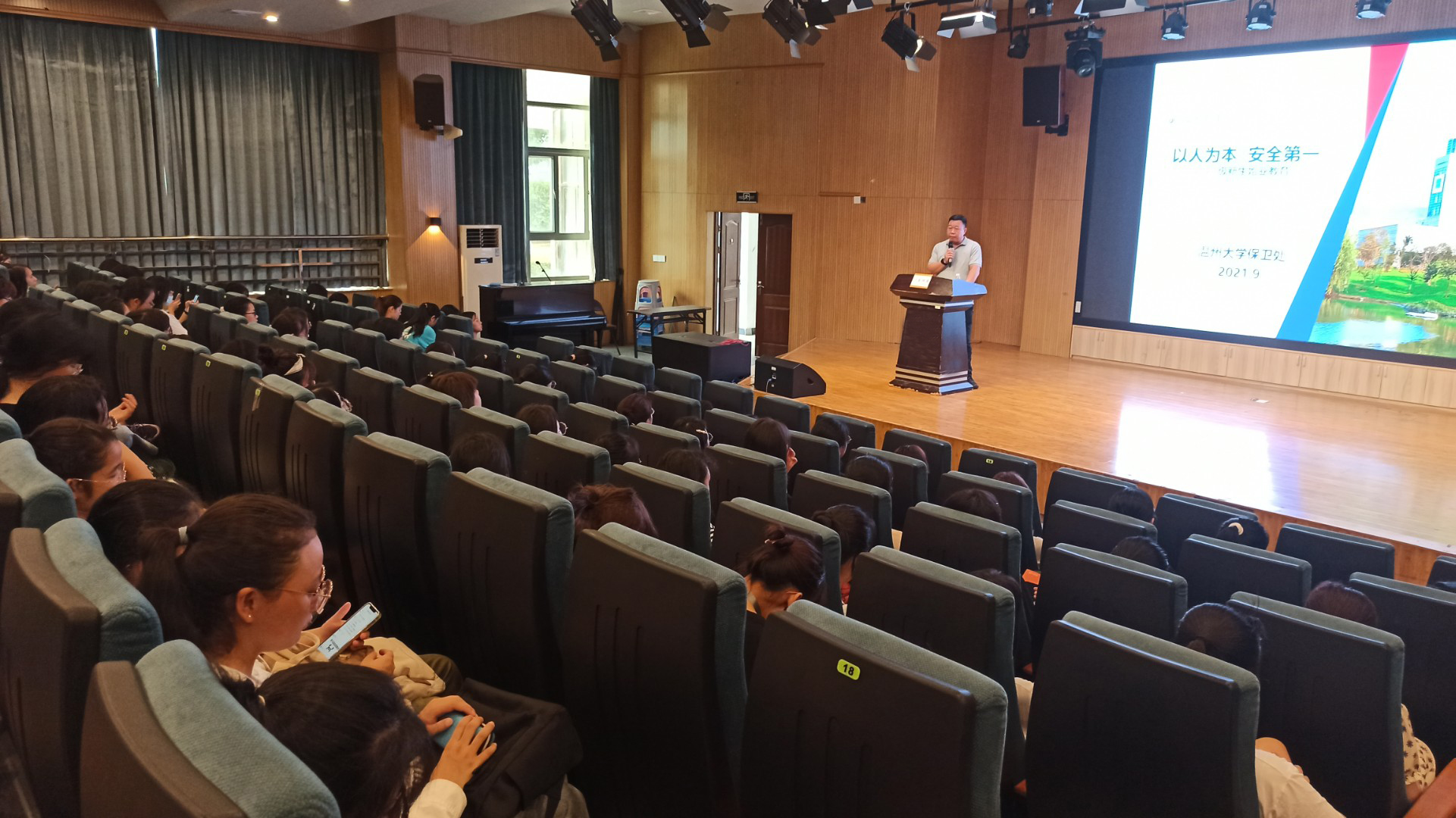 为了提高学生的遵纪守法意识、安全防范意识,学院开展安全教育活动。邀请温州大学保卫处高顺德老师给2021进行“以人为本,安全第一”专题讲座,由学院学工办主任林丽丽老师讲解《温州大学学生手册》中有关学生的管理规定。