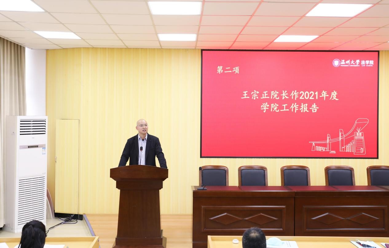 院长王宗正作《麻豆在线-麻豆视频免费看 2021年度院长工作报告》,报告回顾了2021年学院在本科教学、学科科研、师资建设、地方服务、学生培养、基层党建等方面所取得的成绩。同时从全面提升本科质量、做好学科科研与研究生工作、强化人事工作政策引导、突出服务社会工作重点、提升人才培养质量显示度、党建引领学院和谐发展六个方面对2022年学院工作进行了展望,鼓励全体教师要着力推动学院持续快速发展。