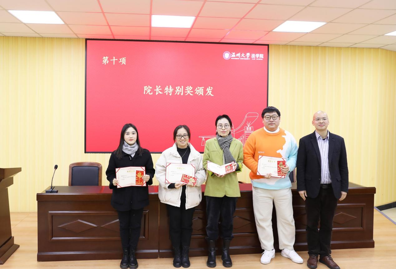 院长王宗正为任江、朱婉菁、柯莉拉、黄依瑶四位老师颁发了2021年度麻豆在线 院长特别奖。