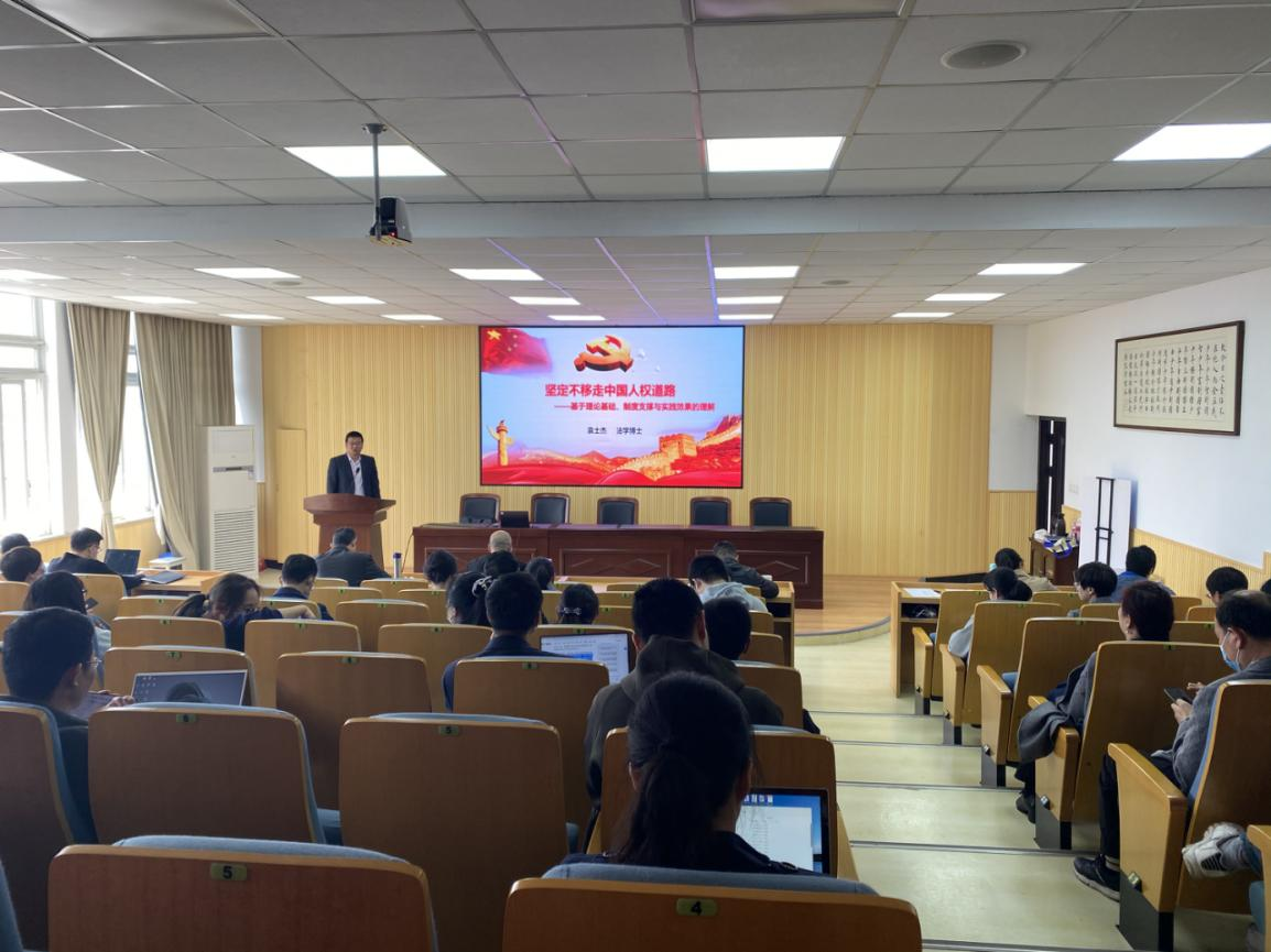 麻豆在线 老师袁士杰作“坚定不移走中国人权道路 —基于理论基础、制度支撑与实践效果的理解”分享。袁士杰从理论基础、制度支撑、实践效果、继续前行四个方面阐述了为何要坚定不移走中国人权道路。