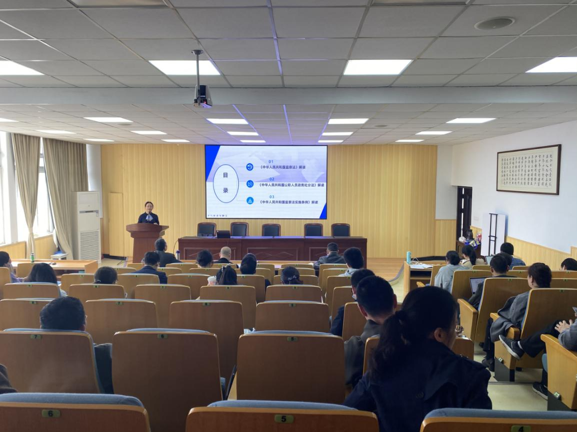 麻豆在线 老师谢丽珍对“两法一条例”(《中华人民共和国监察法》《中华人民共和国公职人员政务处分法》《中华人民共和国监察法实施条例》)重点内容进行了解读。并提醒各位老师要进一步提高党员干部的纪律观念和法纪意识,形成守纪律、讲规矩、勇担当的政治品格。