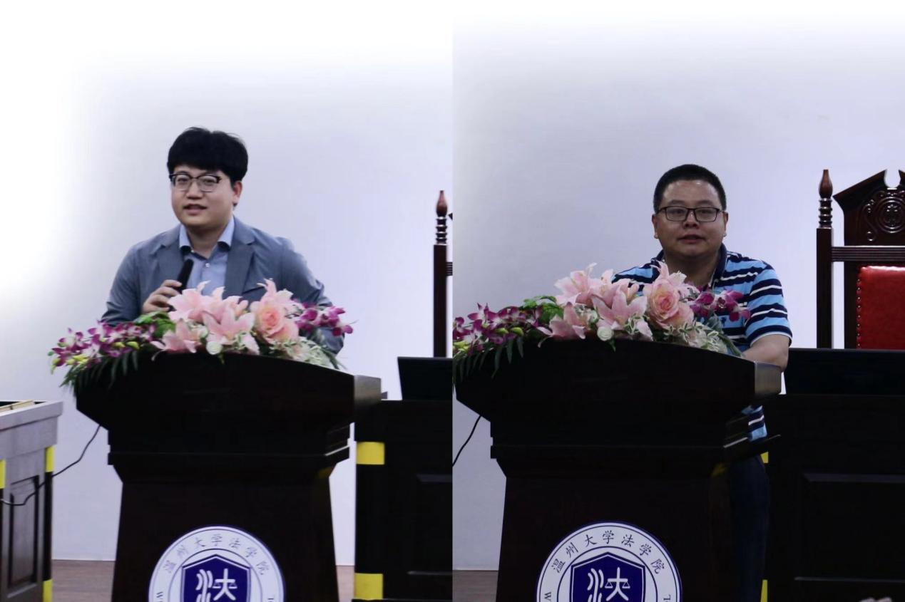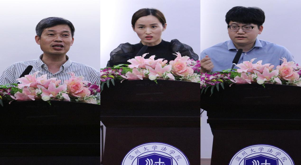 第一个阶段,举行麻豆在线-麻豆视频免费看 和上海浩信(温州)律师事务所法学实践基地的签约仪式。上海浩信(温州)律师事务所主任章超凡律师从麻豆在线 副院长周湖勇老师手中接过温州大学法学实践基地的授牌,随后,章主任、周副院长分别代表律所和麻豆在线 就双方的实践合作发言。