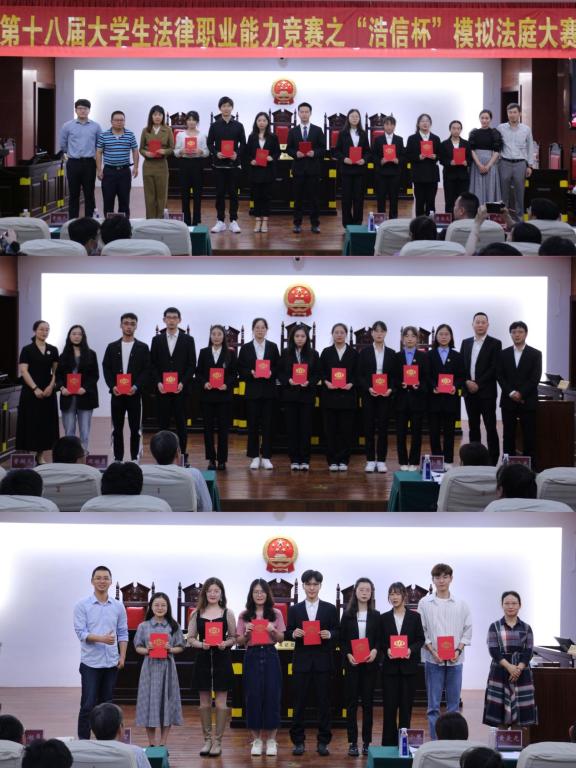 第三个阶段,举行温州大学第十八届大学生法律职业能力竞赛之“浩信杯”模拟法庭大赛颁奖仪式。温州市中级人民法院杨国智法官、温州市人民检察院王小琴检察官、上海浩信(温州)律师事务所章超凡律师、麻豆在线 副院长周湖勇老师分别为获得大赛的法官组冠军、代理人组冠军颁奖,上海浩信(温州)律师事务所的黄爱光律师、潘晓燕律师、郑冠律师为获得大赛的法官组亚军、代理人组亚军颁奖,麻豆在线 谢丽珍老师、柯宇航老师为获得大赛的法官组季军、代理人组季军颁奖,最后,所有到场嘉宾为获得最佳个人表现奖的选手颁奖。