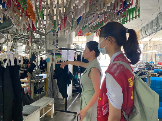 第二分队前往温州佳韵服饰有限公司进行了实地调研。相关负责人向我们介绍了该公司成立时间、发展历程以及相关合作品牌。据了解,该公司产品包括牛仔服饰、梭织裤、童装等,是浙江森马集团的牛仔裤主力定点生产公司,也与“唐狮”、“海澜之家”等国内一线休闲服品牌建立了合作关系,经过该公司多年的努力和拼搏,也获得多项荣誉。同时了解到随着时代的发展,公司用工年龄已从此前的26岁左右到现在的35岁左右。而为了让员工在工作之余有更丰富的生活,该公司成立了职工之家,不仅让员工子女能够有人照看,还能让他们在厂区享受丰富健康的业余生活、感受到家的温暖、成长的快乐,让他们对公司更有归属感和认同感。最令我们影响深刻的是该职工之家为员工的子女开办了一个托育园,并聘请了专业的幼保阿姨照看。这不仅让员工子女能够得到较好的照顾,还能够让员工更加安心工作,工作之余也能让他们感受到家庭的温暖。