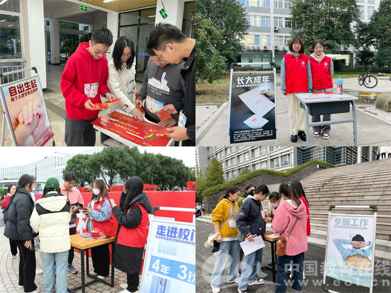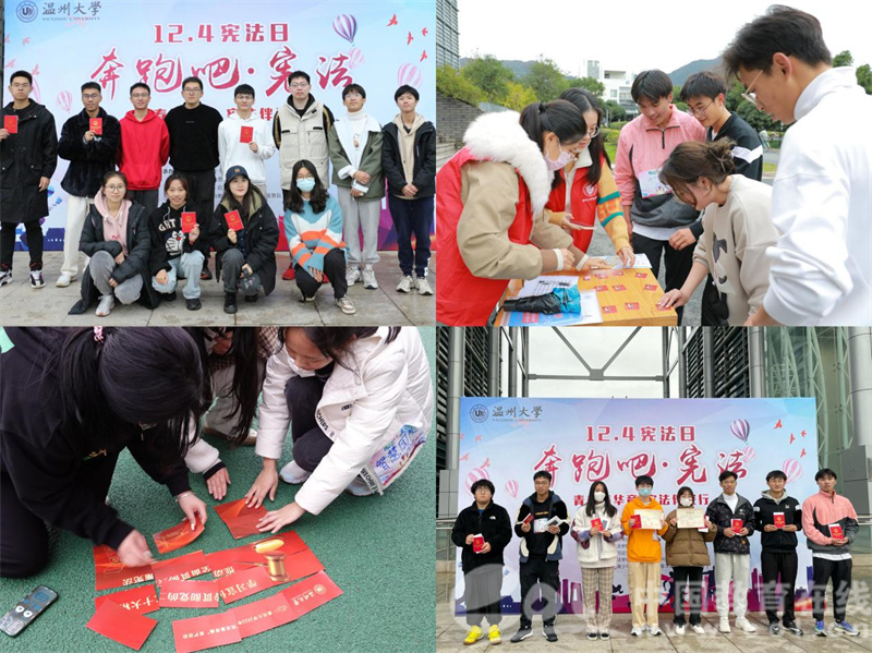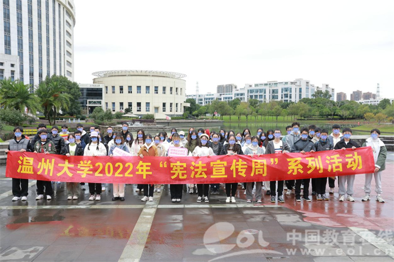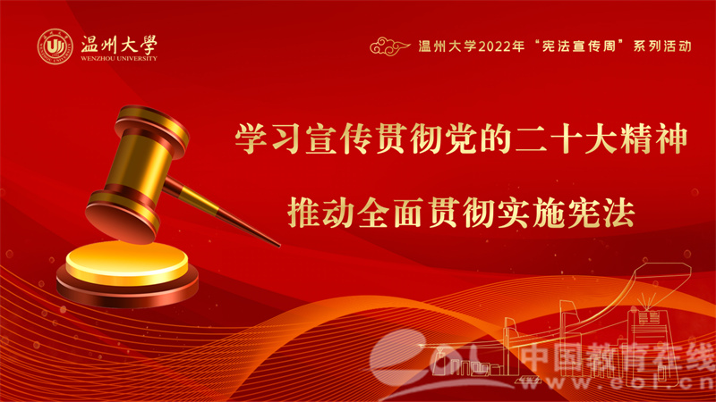 中国教育在线浙江站讯 (记者 占尘雪 通讯员 温大萱)2022年12月4日是第九个国家宪法日,今年也是我国现行宪法公布施行四十周年。为认真学习习近平法治思想,深入贯彻落实党的二十大精神,进一步在青年大学生中普及宪法知识、弘扬宪法精神、树立宪法权威,温州大学组织开展了以“学习宣传贯彻党的二十大精神,推动全面贯彻实施宪法”为主题的宪法宣传周系列活动。从干货满满的宣讲视频到思维碰撞的宪法知识竞赛,从社区、校园普法到国旗下的庄严宣誓,内容丰富、形式多元,为师生带来丰富的宪法宣传活动体验。