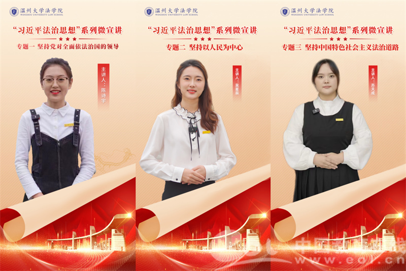 正值“十一个坚持”提出两周年,温州大学习近平法治思想研究会推出了“习近平法治思想”系列微宣讲,以视频宣讲的形式解读习近平法治思想的“十一个坚持”,增进广大青年对习近平法治思想核心要义的理解,引领青年学生学习习近平法治思想,争做新时代法治青年。