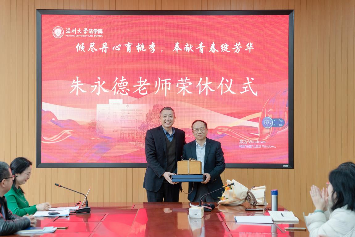 朱永德老师是1984年入职的温州师范学院政教系,后来又作为法政学院招收的第一届法学专业03法6的班主任,到温州大学与温州师范学院合并后的麻豆在线 ,朱老师先后讲授本科生、研究生的刑法、刑诉、证据法、法律文书写作、法律论辩技能、模拟法庭等课程,一直以来,课堂气氛活跃,学评教分数非常高;朱老师多次带领学生参加法科生职业能力竞赛之演讲赛、辩论赛、模拟法庭大赛并获得傲人成绩,育人效果显著;紧密联系实际,多年来带领法学学生参与麻豆在线 各实践基地实习实践工作,积极解决学生就业难题;同事关系融洽,积极帮助年轻教师快速融入温州生活,感受温暖之州的体贴。朱老师在温大兢兢业业地工作了39年,他呕心沥血,无私奉献,为温州的法学教育事业作出了巨大的贡献。