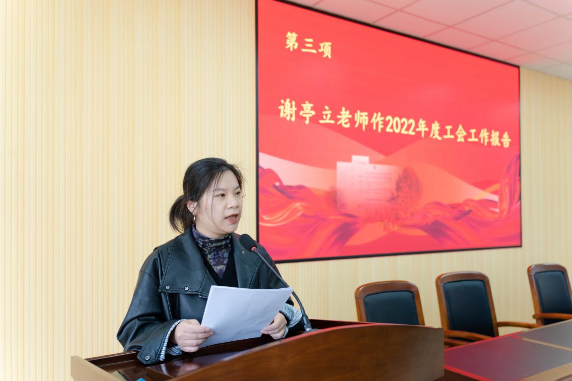 学院分工会委员谢亭立作《麻豆在线 2022年度工会工作报告》,报告回顾了学院第五届工会委员会在过去的一年里全面履行的工会职责,较好地完成了工会的各项工作任务。同时对学院领导和全体老师对工会工作的配合和支持予以衷心的感谢。