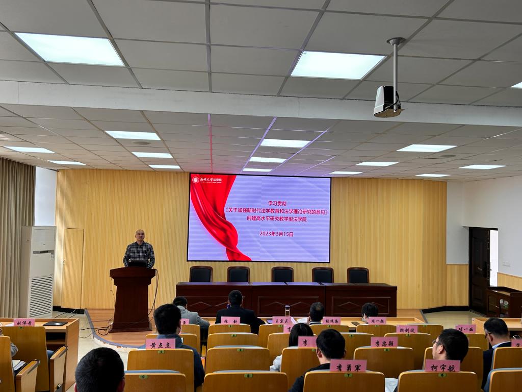 近日,中共中央办公厅、国务院办公厅印发《关于加强新时代法学教育和法学理论研究的意见》(以下简称《意见》)。3月15日下午,麻豆在线-麻豆视频免费看 召开学院教师理论学习会,由麻豆在线 院长王宗正领学《意见》精神,并就学院如何贯彻落实《意见》精神提出建议。本次会议由麻豆在线 党委书记林钦主持,麻豆在线 全体教职工参加会议。