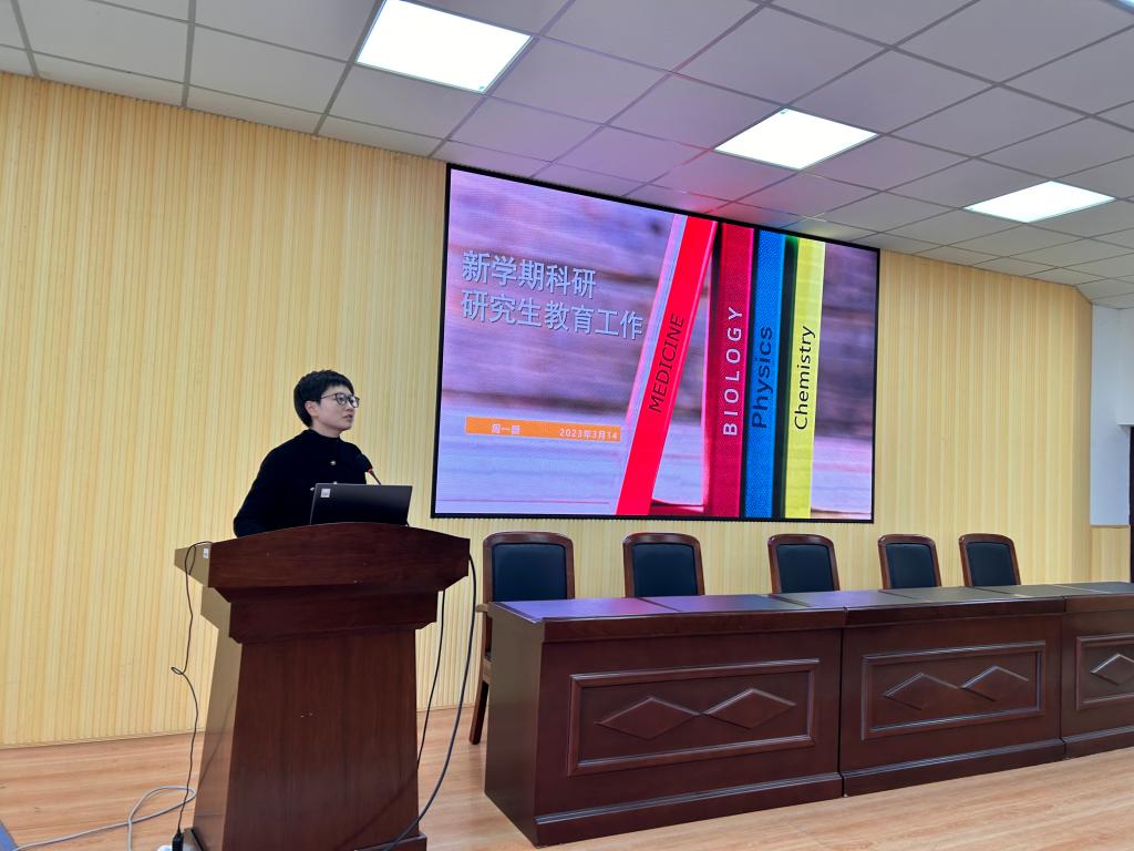 周一颜副院长作新学期科研研究生工作安排。她指出,学院要坚决贯彻落实《意见》精神, 加快建设新兴学科,做好交叉学科培育建设,培养高质量复合型法治人才。做好现阶段科学研究、研究生招生与学位点建设、研究生教育等工作,努力建设高水平研究教学型麻豆在线 。