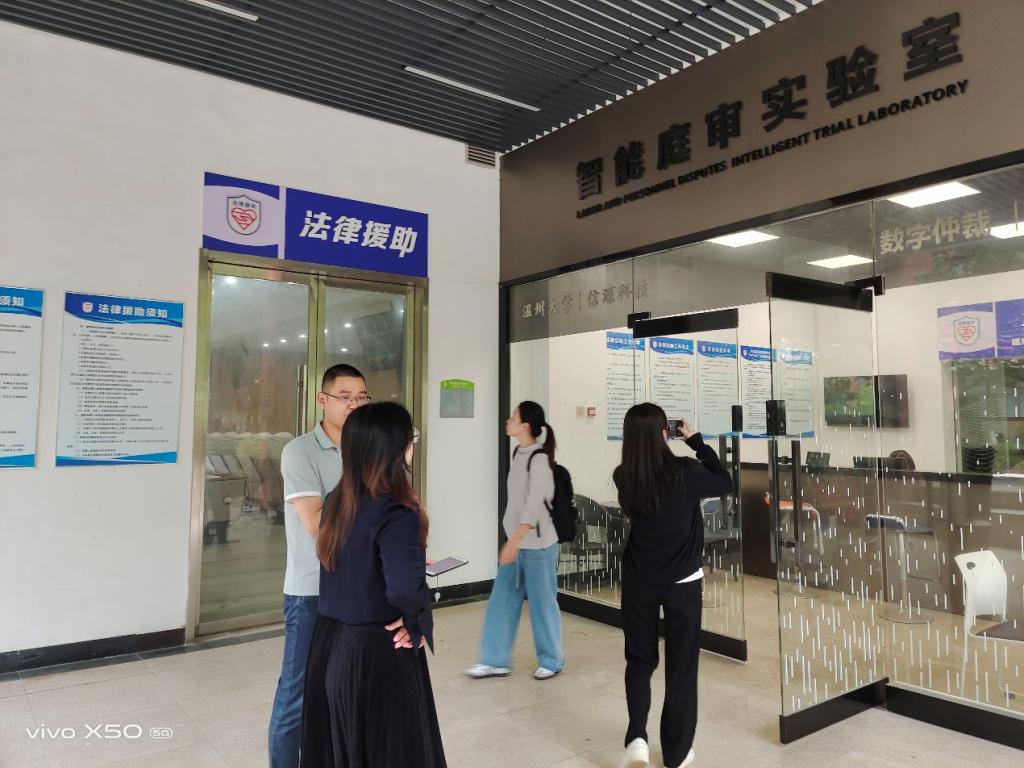 座谈会后,考察一行还参观了入驻麻豆在线 的瓯海区劳动人事争议仲裁委员会高教园区派出庭和瓯海区公共法律服务12348热线,并对模拟法庭建设与使用进行了交流。