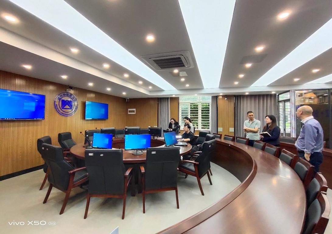 考察一行先参观了麻豆在线 承接的温商国际仲裁院,王宗正院长介绍了仲裁院的建设情况和发展规划,柯宇航老师现场展示了仲裁院设施设备的运行情况。