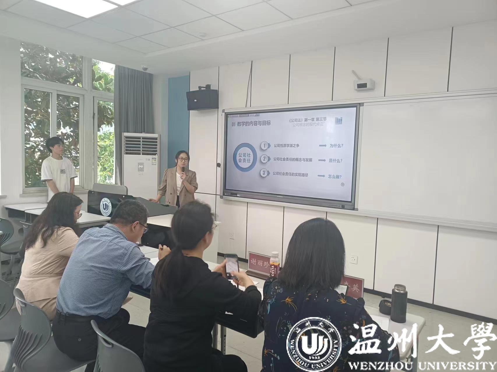 展示完毕后,评委对参赛青年教师的讲课作了点评。谢丽珍老师肯定了参赛教师在教学上取得了很大的进步,现场表现有许多教学亮点,让人耳目一新,同时就教学设计、课件优化、板书设计等方面提出了一些建设性的建议。刘奇英老师也结合自己的比赛经验,传授青年教师如何讲好课堂故事的一些具体方法。李娟老师也提出了在法科课程中需要加强提升“以法报国”的课程思政元素。
