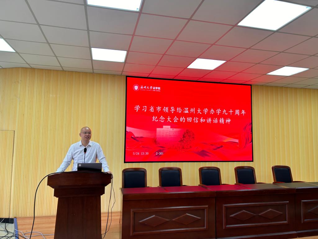 林钦书记传达了省市领导给温州大学办学九十周年纪念大会的回信和讲话精神。在温州大学庆祝办学90周年之际,浙江省委书记易炼红给温州大学回信祝贺勉励,温州市委书记刘小涛出席温州大学办学90周年纪念大会并致辞讲话,充分肯定了学习90周年办学成就,对学校发展寄予殷切希望。张健书记强调,要进一步提高政治站位,深刻领悟回信和讲话精神重要意义,锚定目标定位,抢抓机遇促进学校能级跃升,增强使命感,加快推进学校内涵式高质量发展。赵敏校长强调,要拼搏争先、砥砺奋进,切实把回信精神和讲话精神转化为谋划工作的思路、推进工作的举措,奋力推动学校加快实现高质量内涵式发展,在浙江忠实践行“八八战略”、奋力推进“两个先行”和温州“续写创新史、走好共富路”的伟大实践中展现新的更大作为。