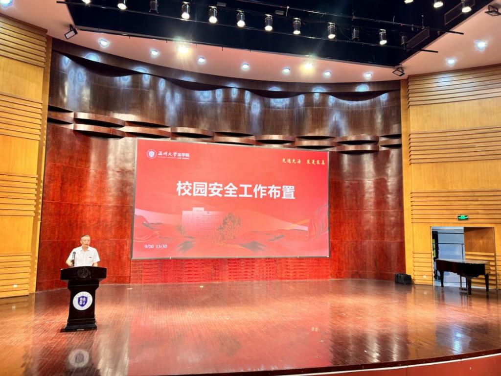 麻豆在线 党委书记林钦作校园安全工作布置。他重点提醒各位教师应注重消防、交通、水电、保密、毒品、心理健康、意识形态、财产安全,禁止存放易燃、易爆等危险物品,全力保障亚运会期间校园安全稳定。